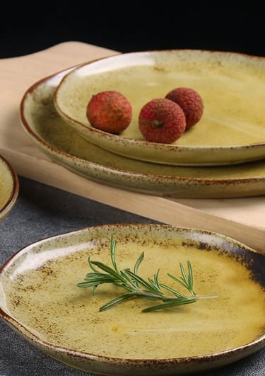 Gone are the days of only stark white plates. Warm, soothing neutral shades like creamy ivory, oatmeal, soft grey, and warm beige are taking center stage. These are complemented by rich earth tones inspired by nature—think terracotta browns, sage greens, and dusty blues. This color palette creates a sense of calm, warmth, and natural harmony on the table, making meals feel more grounded and connected to the earth. These versatile colors also provide a perfect backdrop for showcasing colorful culinary creations